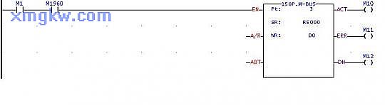 (3) 通過(guò)通訊口port1~port4的任意一個(gè),都可以使永宏P(guān)LC作為主站,與外圍設備通過(guò)Modbus協(xié)議進(jìn)行通訊。同樣是通過(guò)“功能指令+表格”的形式,FUN150.M_BUS指令可輕易實(shí)現PLC對變頻器的通訊控制,簡(jiǎn)單顯示如下: