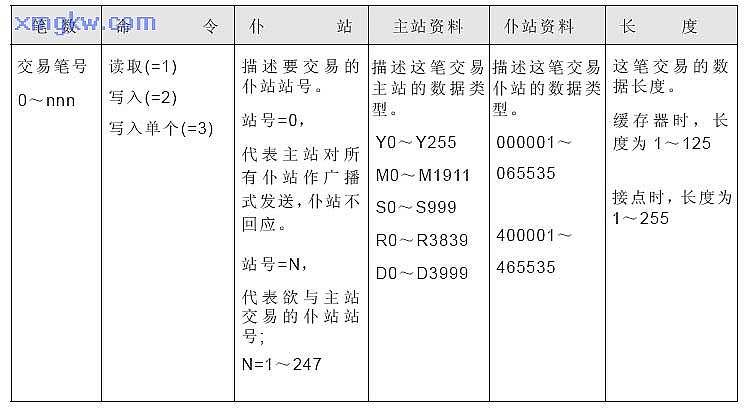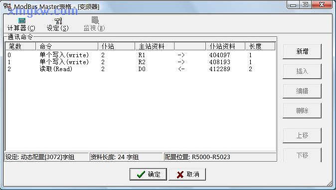 點(diǎn)擊“確定”后,進(jìn)入以下通訊命令表格: