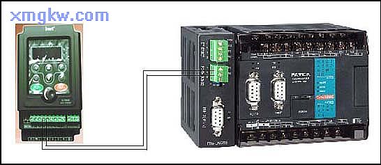 【接線(xiàn)示意圖】 本例中,PLC的Port4通訊口( RS-485接口)與變頻器連接: