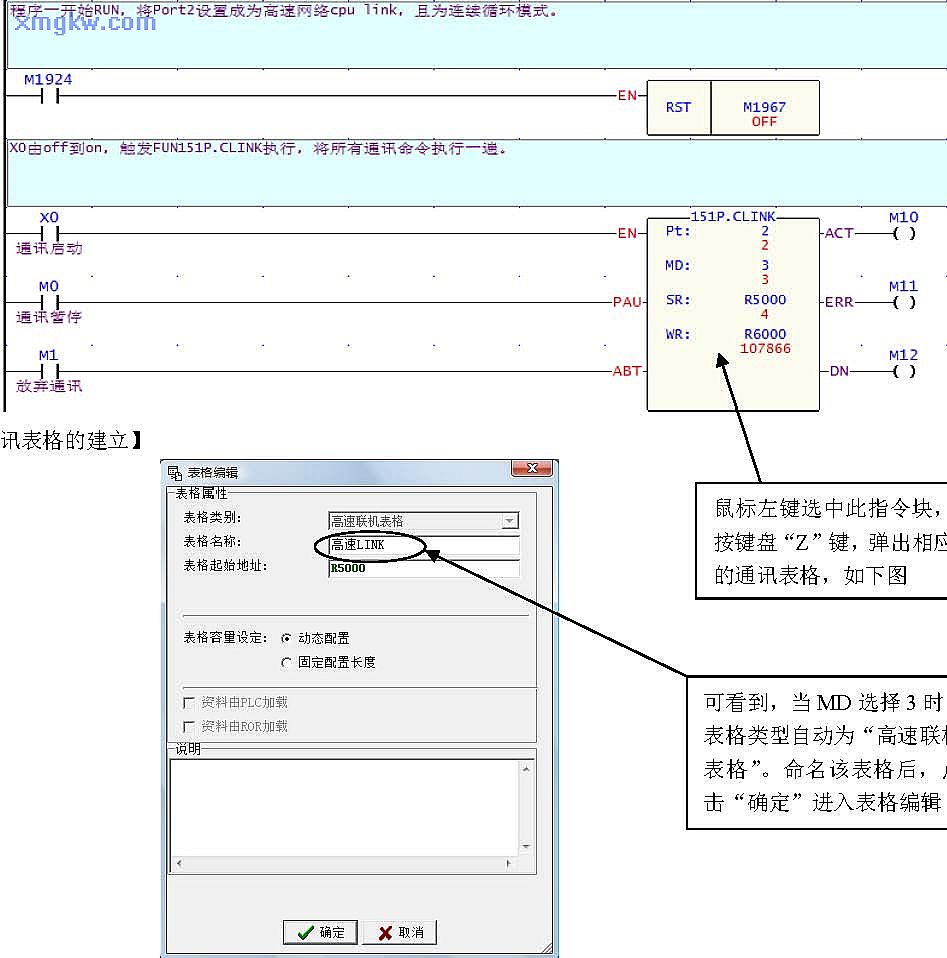 鼠標左鍵選中此指令塊,按鍵盤(pán)“Z”鍵,彈出相應的通訊表格,如下圖