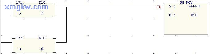 3. D10的設置值不在 0~7范圍時(shí), D10也被寫(xiě)入 FFFFH,保證不會(huì )因 D10寫(xiě)入其它值也能使 Y0~Y7動(dòng)作而導致輔助流水線(xiàn)暫停工作。