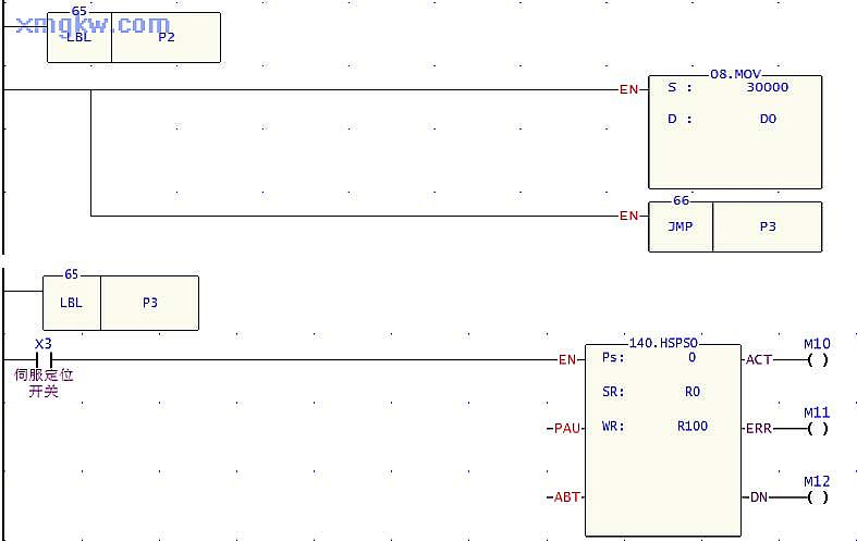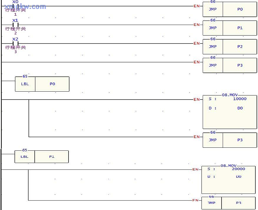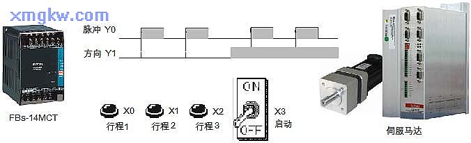 【控制要求】永宏FBs -14MCT發(fā)送脈沖控制伺服電機,有 3種工作行程距離,可通過(guò)三個(gè)開(kāi)關(guān)任意選擇,滿(mǎn)足不同的工作需要。