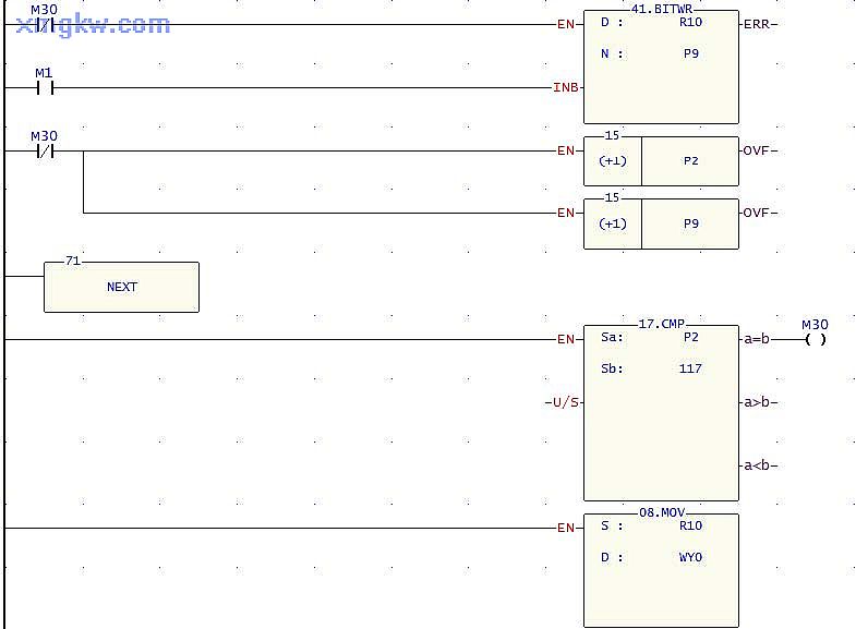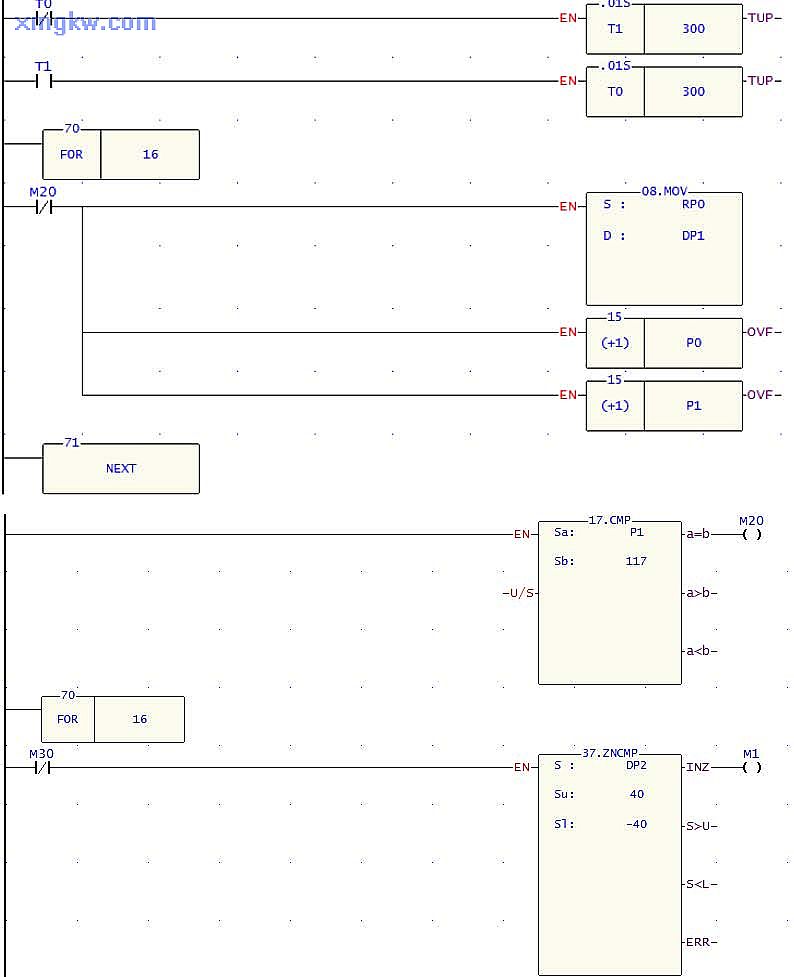【控制要求】 FBS-40MA + FBs-TC16,偵測外部 16路溫度 , 每隔3秒將新溫度數據放入 D101-D116;當溫度超過(guò) 40℃或小于- 40℃時(shí),正常指示燈滅。