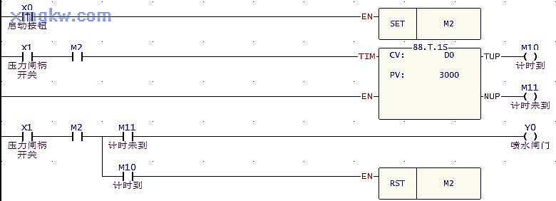 噴水器閥門(mén):當用力握時(shí)開(kāi)關(guān) X1為ON