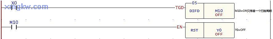 1. 1. X0由 ON→OFF動(dòng)作時(shí) (下微分指令觸發(fā) ),DIFD指令被執行, M10送出一個(gè)掃描周期的脈沖。